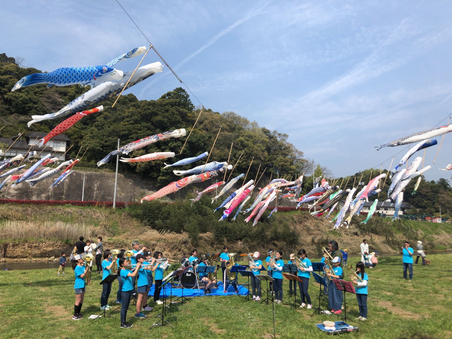 地域のみな様との交流を大事にして、「かんべの里新緑まつり」「ドリームエレキ」「朝日まつり」「夕日と音楽を楽しむ会」などで演奏の機会をいただいています。2月9日には、プラバホールでコンサートも予定しています。